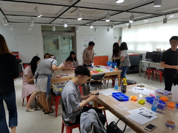 지난 25일 동두천 특화사업지원센터가 동두천 성당 청년부 10여명을 대상으로 '석고방향제 만들기 공방체험 프로그램'을 실시했다. 사진은 공방체험이 진행되는 모습.(사진제공=동두천시청)