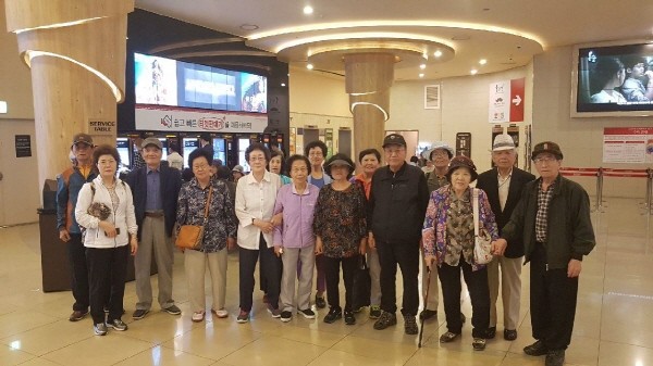 29일 서울지방보훈청과 (주)롯데시네마가 호국보훈의 달을 맞아 전국 8개 롯데시네마 상영관에서 국가유공자 초청 영화관람행사를 실시했다. 사진은 행사에 참석한 노인들이 입장 전 기념촬영을 하고 있는 모습.(사진제공=서울보훈청)
