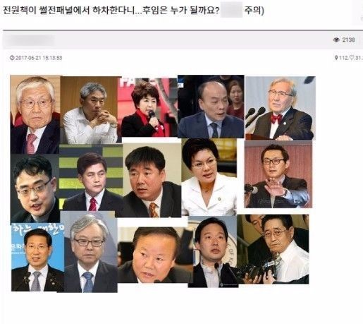 현재 온라인상에서 하마평에 오르는 인물은 자유한국당 김문수 전 경기도지사, 강용석·정두언·전여옥 전 의원 등이다.