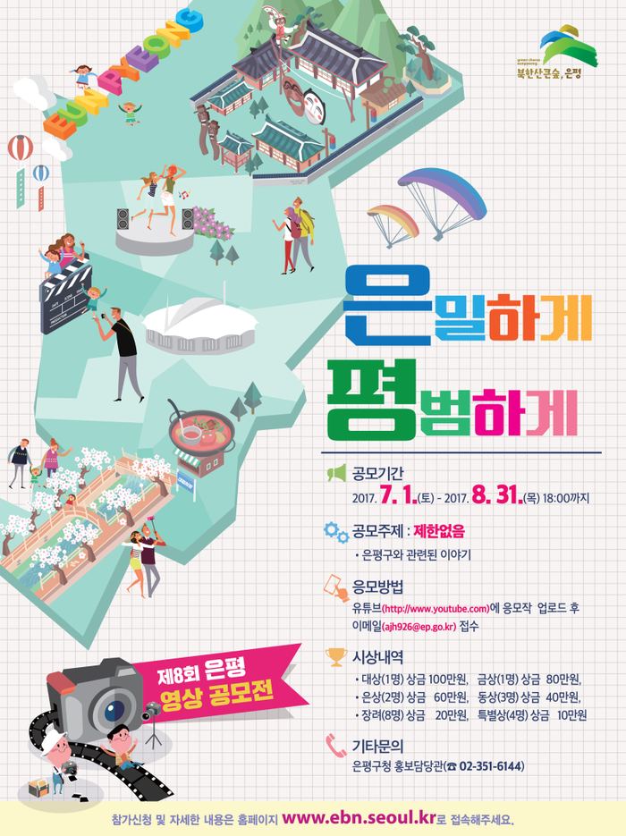 ‘은밀하게 평범하게’라는 주제로 진행되는 이번 공모전은 은평과 관련된 소재를 가지고 주제에 맞게 제작해 제출하면 된다.
