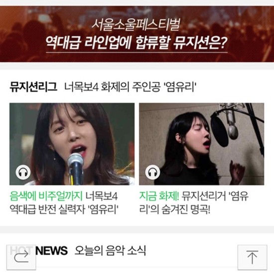 한편 염유리는 케이블 채널 Mnet 예능프로그램 ‘너의 목소리가 들려’에서 ‘예술의 전당에서 노래한 대전 임수정’이라는 닉네임으로 출연했다.