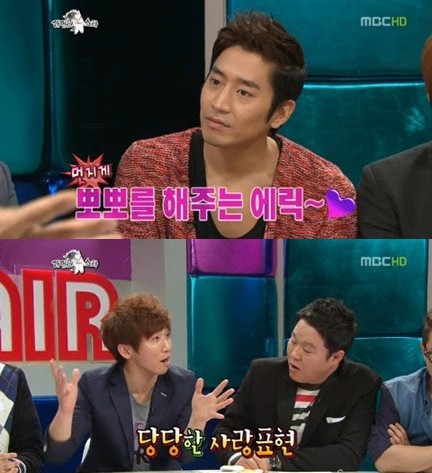 유세윤은 “예전에 술을 마시고 사무실에서 자려고 하는데 갑자기 차가 한 대 서더니 에릭과 여자친구를 목격했다”고 말문을 열어 이목을 사로잡았다.