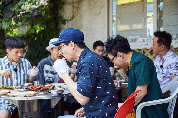 사진 속 '무한도전' 멤버들은 맛있게 식사를 하고 있다. 특히 갈비를 뜯고 있는 유재석과 박명수의 진지한 모습이 시선을 사로잡았다.