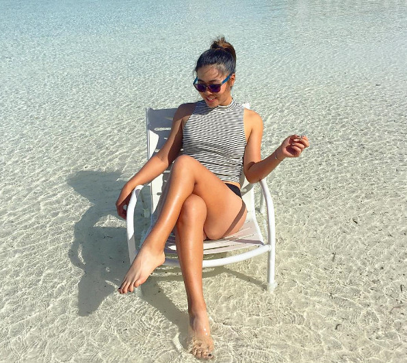 다니엘 강은 과거 자신의 인스타그램을 통해 한 개의 사진을 게재했다. 사진은 다니엘 강이 해변가에서 수영복을 입고 앉아 있는 모습이 담겨져 있다.