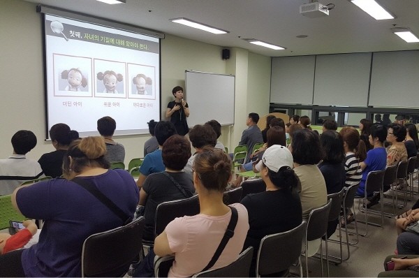 경기 부천시 드림스타트는 최근 드림스타트 분소 프로그램실에서 드림스타트 부모 37명을 대상으로 부모교육 ‘건강한 아이로 키워요’를 진행했다. 사진은 ‘부모-아동간의 올바른 대화법’을 주제로 교육이 진행 중인 모습.(사진제공=부천시청)