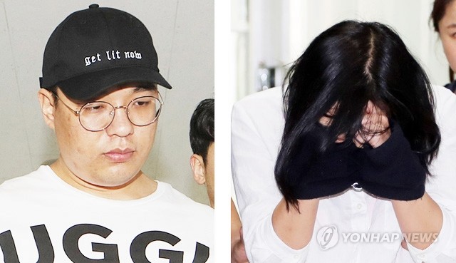 창원 골프연습장 주부 납치·살해 용의자 심천우(왼쪽), 강정임 씨가 도주 9일 만인 3일 검거돼 서울 중랑경찰서에서 유치장으로 이동하고 있다.