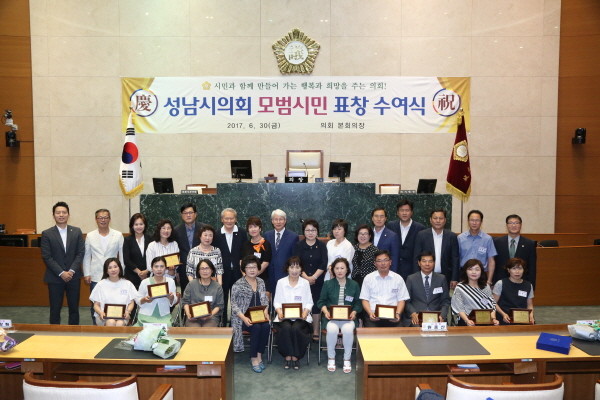 [성남=오왕석 기자] 경기 성남시의회는 최근 시의회 본회의장에서 모범시민 50명에 대한 '표창수여식'을 개최했다.
