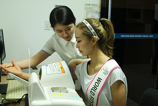 실제 병원 검사실로 향한 김다영, 김유리, 한지윤, 최리나는 혈압재기, 골밀도 검사 등 기초건강검진을 받았다.