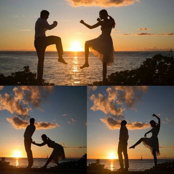 공개된 사진 속에는 박용근과 채리나가 석양을 배경으로 우스꽝스러운 포즈를 취하며 색다른 웨딩사진을 완성시켜 보는 이들의 부러움을 자아냈다.