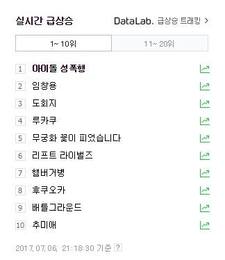 '아이돌 성폭행' 키워드가 포털사이트 실시간 검색어 1위를 장악, 누리꾼들의 이목을 집중시켰다.