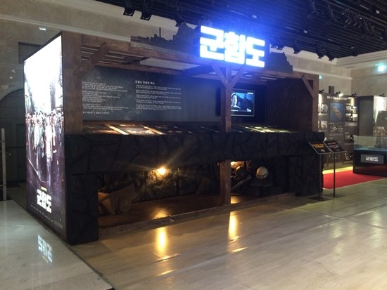 롯데시네마 월드타워에 오픈한 '군함도'의 극장 전시는 군함도의 숨겨진 역사를 시작으로 영화 속 군함도의 주요 공간 컨셉아트와 배우들의 캐릭터 소개 등을 담아낸 전시존과 군함도 개미굴을 직접 체험해 볼 수 있는 체험존, 그리고 군함도의 디오라마가 설치되어 관객들에게 이색적인 경험을 선사하고 있다.