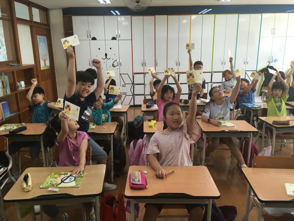 경기 김포시가 지난 6일 통진초등학교 3학년을 대상으로 ‘우리집 도로명주소로 엽서보내기’ 체험학습을 실시했다. 사진은 참여 학생들이 엽서를 들고 기념촬영을 하는 모습.(사진제공=김포시청)
