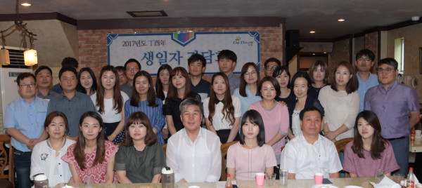 최근 경기 동두천시는 생일을 맞이한 직원 40여명이 참석한 가운데 지역내 소재 음식점에서 7월 생일자 간담회를 개최했다. 사진은 오세창 시장 및 참여자들이 기념촬영을 하는 모습.(사진제공=동두천시청)