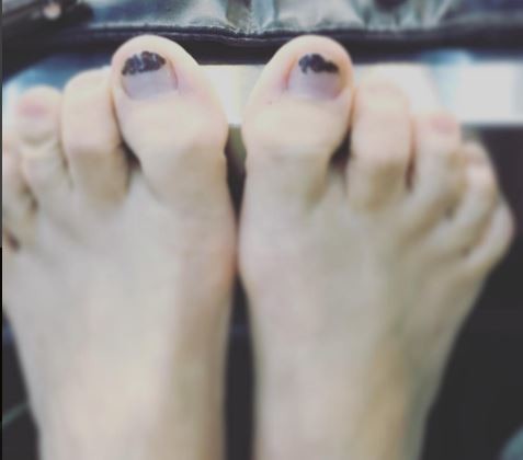 공개된 사진 속 김선아는 검정색 매니큐어가 거의 지워져있는 자신의 발톱을 공개해 눈길을 끌었다.