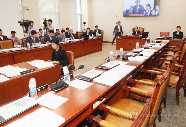 6일 오전 국회 산업통상자원위원회 전체회의에서 자유한국당 이채익 간사 등이 추경심사에 항의하며 퇴장, 더불어민주당과 국민의당 의원들이 참석한 가운데 상임위가 열리고 있다.