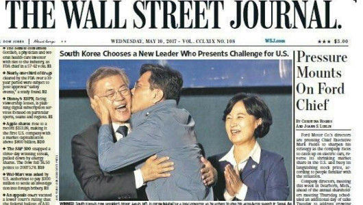 더불어 윌스트리트저널 1면에도 두 사람의 볼 뽀뽀 사진이 게재됐다.
