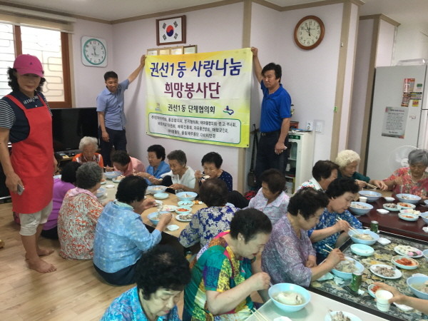 수원시 권선1동 체육진흥회, 경로당 방문해 삼계탕 대접