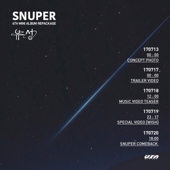 스누퍼는 12일 자정 공식 SNS를 통해 컴백 스케줄러 공개하며 새 앨범 타이틀곡 제목이 '유성'임을 공개했다.