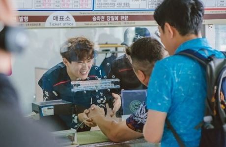 수호와 찬열은 제주도에서 버스 터미널 매표소 직원으로 완벽히 변신한 후 규동형제를 기다렸다.