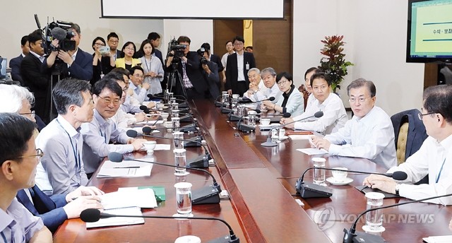 문재인 대통령이 13일 오전 청와대 여민관에서 열린 수석보좌관회의를 주재하고 있다.