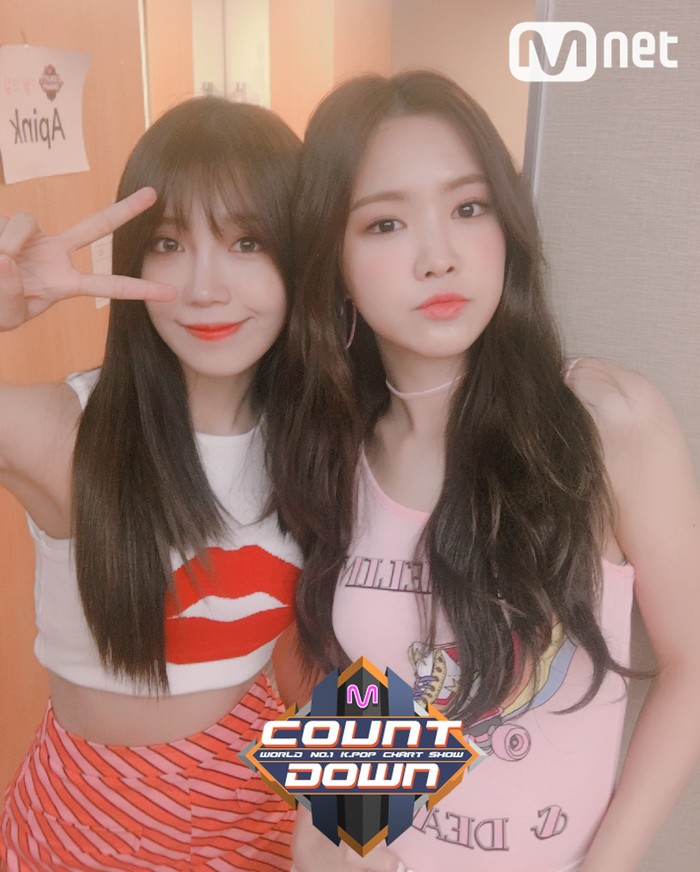 '엠카운트다운'는 13일 오후 SNS 계정을 통해 "셀카인가 화보인가!!! 소장을 부르는 #에이핑크 #은지 #나은 양 사진!!! 넘~나 이쁜 것! 잠시 후 6시 #엠카운트다운 #FIVE 무대에서 이 아름다움!! 완젼하게 느끼실 수 있습니다! 그럼 잠시 후에 만나요!"라는 글과 함께 한 장의 사진을 공개했다.