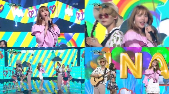 이날 방송에서 인아는 곡에 맞게 하와이안 스타일의 느낌으로 무대를 펼치며 다채로운 모습을 뽐냈다.