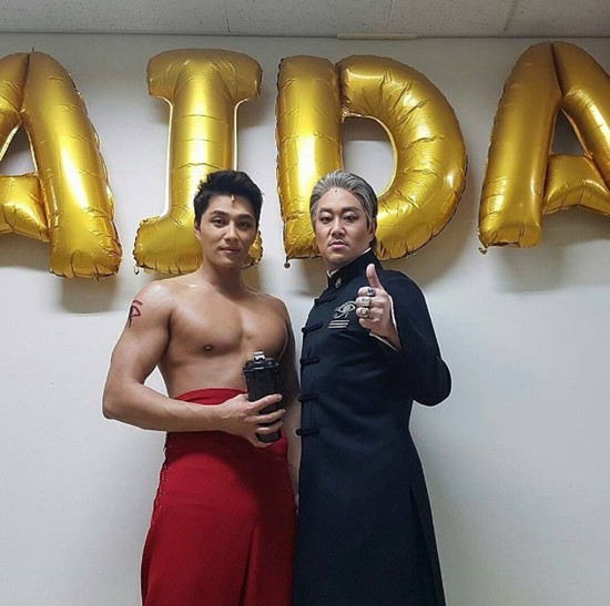 뮤지컬배우 민우혁이 우람한 상체 근육을 공개했다.
