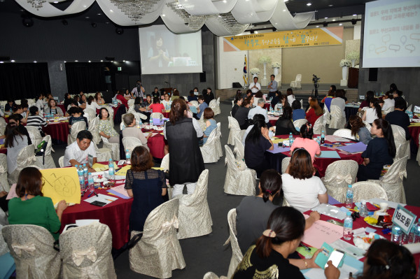김석준 부산광역시교육감이 지난 14일 부산상공회의소 상의홀에서 학부모 150여명이 참석한 가운데 열린 ‘부산교육과 학부모정책에 대한 원탁토론회’에 참석해 학부모들이 제안한 좋은 의견은 내부검토를 거쳐 정책수립에 반영하겠다고 말했다.(사진제공=부산교육청)