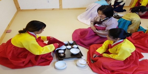 경기 수원시 권선예절원은 17일 세류1동 다문화사랑방에서 다문화가정 이주여성과 함께하는 찾아가는 생활예절교육 및 인성예절 지도사 양성과정교육을 실시했다. 사진은 다도에 대한 교육이 진행 중인 모습.(사진제공=권선구청)