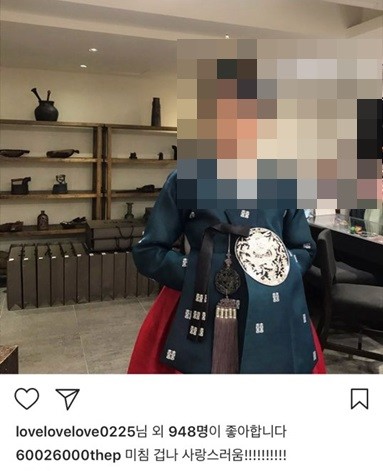 사진은 한복을 곱게 차려입은 황하나의 모습이다. 황하나도 같은날 자신의 인스타그램에 한복을 입고 찍은 사진을 게재했다.