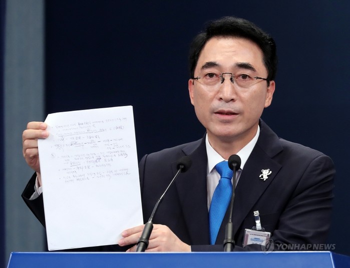 특히 이 의장은 "문재인 정부가 집권한 지 두 달이 넘어 이런 발표를 하는 것이 이해되지 않는다"며 "발견된 문서 일부는 홍남기 국무조정실장이 '정무기획비서관 시절 중립적으로 회의 내용을 정리한 것'이라고 밝히기도 했다"고 지적했다.