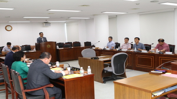 최근 서울 강동구의회 김용철·임춘희·황인구 의원이 의회 중회의실에서 '전통시장 현대화시설 사업지원'을 위해 전통시장상인회장들과 간담회를 개최했다. 사진은 간담회에서 상인회와 의원들이 토론하고 있는 모습.(사진제공=강동구의회)