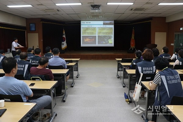 경기 하남소방서는 지난 17일 오후 3층 대회의실에서 의용소방대원 60여명이 참석한 가운데 현장대응능력 향상을 위한 정기교육훈련을 실시했다. 사진은 소방서 관계자가 화재의 진행과정에 대해 설명하는 모습.(사진제공=하남소방서)