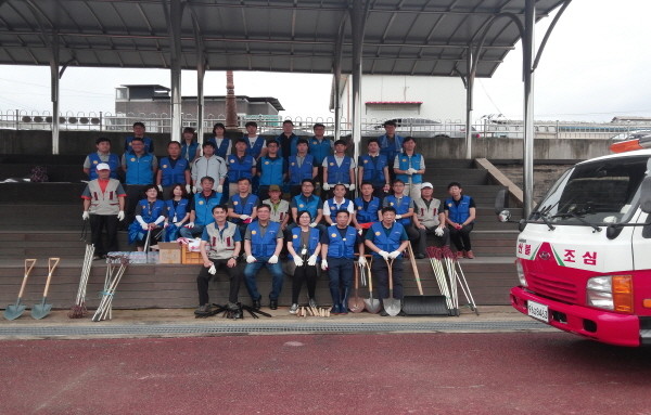 경기 안성시는 지난 17일 시청 및 안성1·2동 직원, 지역자율방재단원 등이 참석한 가운데 안성천 둔치공원 일원에서 하천주변 환경정비와 함께 하천 범람 시 떠내려 온 부유물 제거 활동을 실시했다. 사진은 대청소에 앞서 기념촬영을 하는 모습.(사진제공=안성시청)