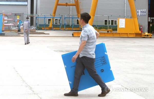 | ▲ 사진은 18일 오후 경남 사천시의 KAI 협력업체 P사에 박스를 들고 들어가는 검찰 관계자.(사진제공=연합뉴스) | ||