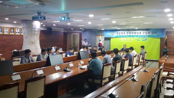 경기 오산시가 지난 18일 지역내 토목·건축·공장설립 등의 개발행위 허가와 관련해 시민과 소통하는 업무 추진을 위한 개발행위 민원대행업체와의 간담회를 시청 상황실에서 개최했다. 사진은 간담회 진행 모습.(사진제공=오산시청)