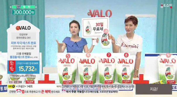 그는 그는 24일 오전 방송된 홈앤쇼핑서 ‘VALO 덴마크 메가파워효소 세탁세제’를 소개했다.