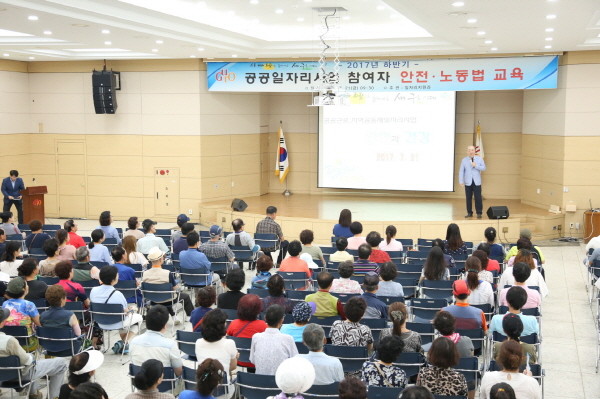 지난 21일 서울 구로구가 공공일자리 참여자 311명을 대상으로 산업재해·안전사고 예방과 사업 종료 후 안정적인 자립을 돕기 위해 ‘공공일자리 참여자 안전·노동법·취업지원 교육’을 실시했다. 사진은 교육이 진행되는 모습.(사진제공=구로구청)