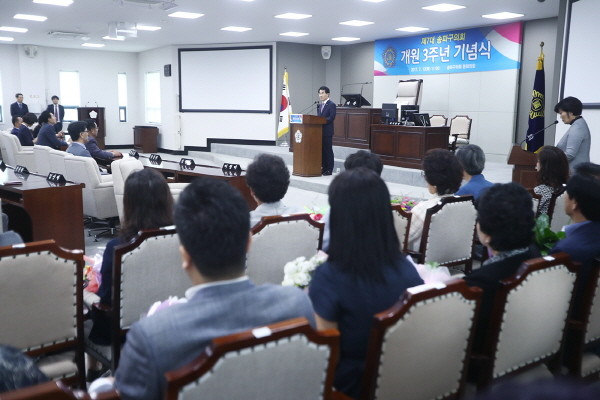 안성화 의장은 기념사를 통해 “송파구의회는 26명의 의원들이 지난 3년간 구민중심의 의정활동으로 행복도시 송파를 만들기 위해 소통과 화합으로 최선의 의정활동을 다했다”며 남은 기간에도 “송파구민의 편안한 삶, 구민복지, 구민재정 그리고 구민 희망을 지켜나가겠다”고 강조했다.