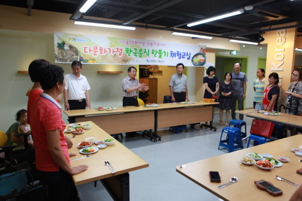 경기 수원시 권선구는 지난 24일 세류1동 주민센터에서 다문화가정을 위한 한국요리 교실 체험 및 복달임 행사를 개최했다. 사진은 이필근 구청장이 인사말을 하는 모습.(사진제공=권선구청)