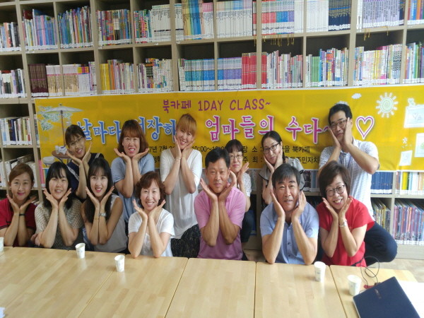 인천 연수구 청학동 주민자치위원회는 최근 청능마을 북카페에서 북카페 활성화 특화사업 1DAY CLASS로 ‘날마다 성장하는 엄마들의 수다’를 진행했다. 사진은 참여자들이 기념촬영을 하는 모습.(사진제공=연수구청)