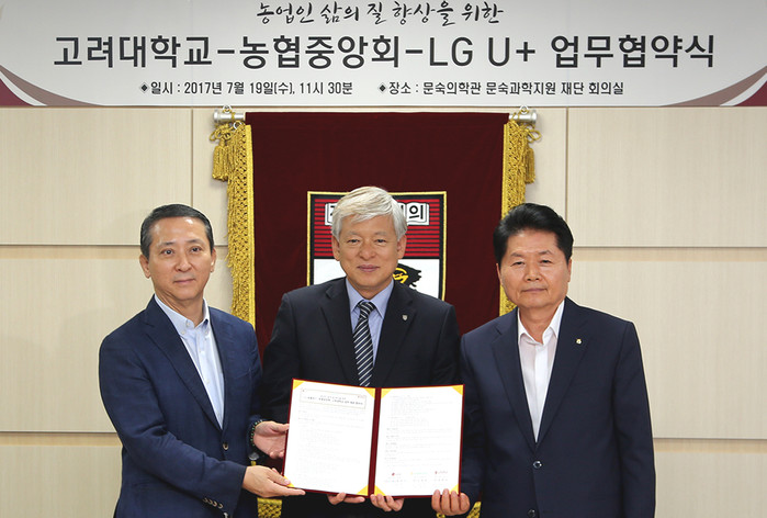 이와 관련해 LG유플러스와 농협중앙회, 고려대는 지난 19일 서울 성북구 안암로 고려대학교에서 권영수 LG유플러스 부회장, 김병원 농협중앙회장, 염재호 고려대총장 등이 참석한 가운데 이 같은 내용을 담은 ‘3자간 양해각서(MOU)’를 체결했다.