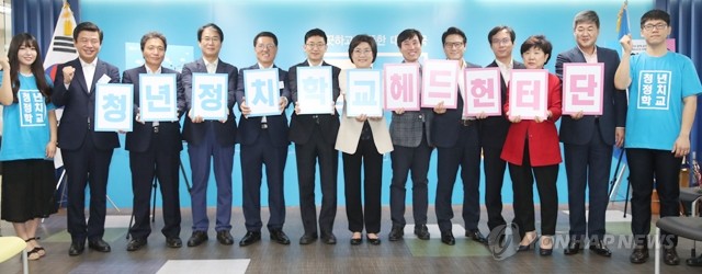 바른정당 이혜훈 대표와 소속 의원들이 26일 오전 서울 여의도 당사에서 열린 ‘바른정당 헤드헌터단 발대식’에서 기념촬영을 하고 있다. 바른정당 헤드헌터단은 공고를 내고 참여를 기다리는 수동적인 모집방식에서 벗어나 직접 현장을 뛰며 정당 정치학교인 청년정치학교를 홍보하고 수강생과 당원을 모집하는 프로그램이다.