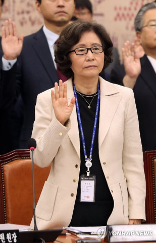 | ▲ 2016년 10월10일 교육문화체육관광위원회의 국정감사에서 증인 선서하고 있는 박명진 당시 한국문화예술위원장.(사진제공=연합뉴스) | ||