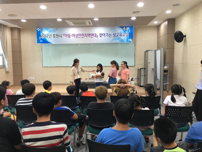 경기 포천시는 26~27일 양일간 시립가산도서관과 청소년문화의집에서 지역내 아동 90여명을 대상으로 취약아동 보호를 위한 '찾아가는 성교육 교실'을 운영했다. 사진은 성교육에 참석한 어린이들이 성교육 강사의 강의를 듣는 모습.(사진제공=포천시청)