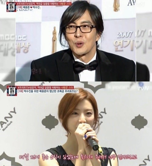 배용준, 박수진 부부는 과거 방송된 tvN ‘명단공개’의 ‘역대급 프러포즈’ 1위에 선정됐다.