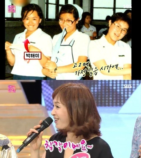 박해미는 SBS 예능프로그램 ‘도전1000곡’에 출연해 자신의 고등학교 시절의 모습이 담긴 사진을 공개했다.