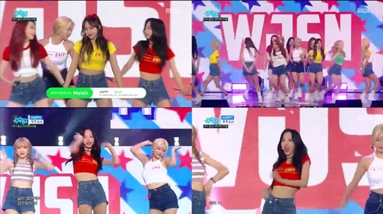이날 무대에 오른 우주소녀는 깜찍한 크롭티를 입고 알록달록한 무대를 배경으로 역동적인 안무를 선보였다.