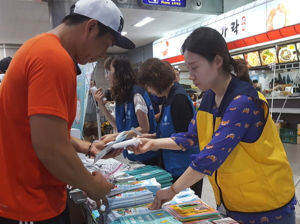 지난 28일 인천 옹진군보건소는 장마철 및 하절기에 발생하는 감염병 및 식중독 발생을 대비해 인천 연안여객터미널에서 지역주민과 관광객을 대상으로 국립인천검역소, 인천중구보건소와 함께 합동캠페인을 실시했다. 사진은 캠페인 진행 모습.(사진제공=옹진군청)