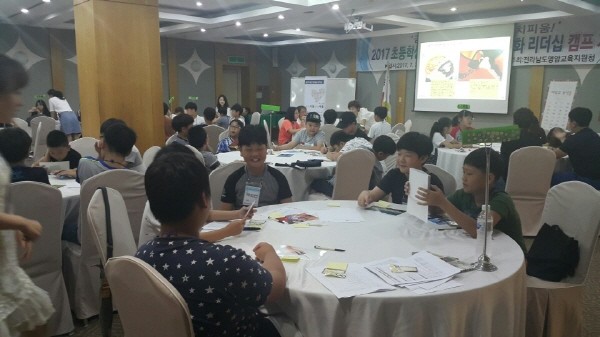 전남 영암교육지원청은 지난 28일 초등학교 학생회 임원과 동아리대표 64명을 대상으로 영암 월출산온천관광호텔에서‘긍정키움! 인성세움! 자치피움!’이란 주제로 학생자치활동 역량강화 리더십 캠프를 운영했다. 사진은 학생들이 리더가 갖추어야 할 태도 등에 대해 의견을 교환하는 모습.(사진제공=영암교육지원청)